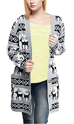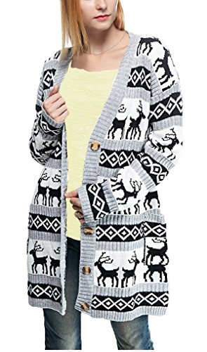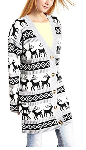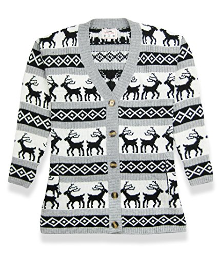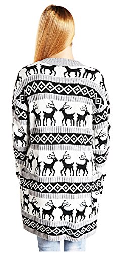 Womens Oversized Christmas Reindeer Cardigan (X-Large, Grey Reindeer Cardigan)
