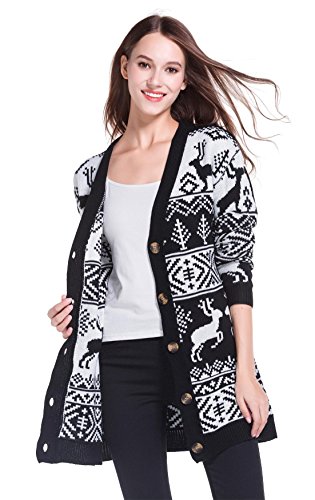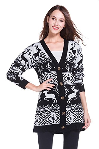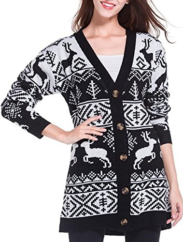 Womens Oversized Christmas Reindeer Cardigan (Large, Black Reindeer Cardigan)