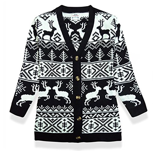 Womens Oversized Christmas Reindeer Cardigan (Small, Black Reindeer Cardigan)