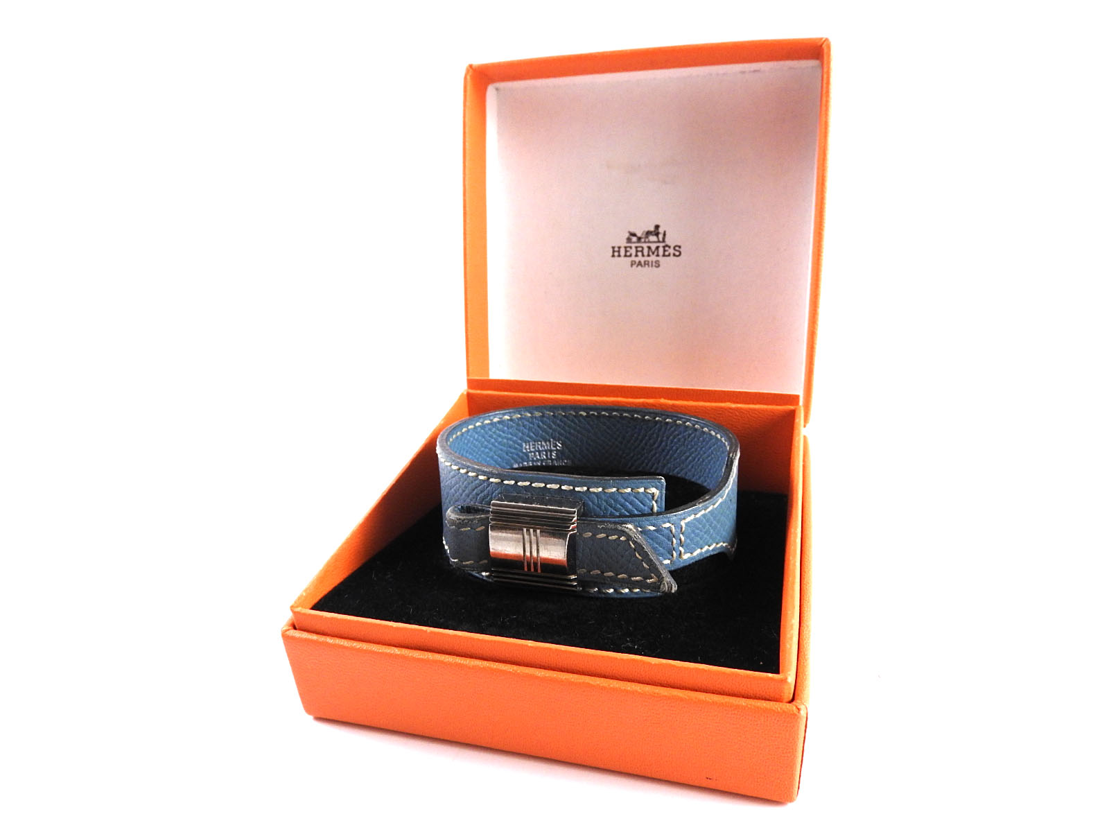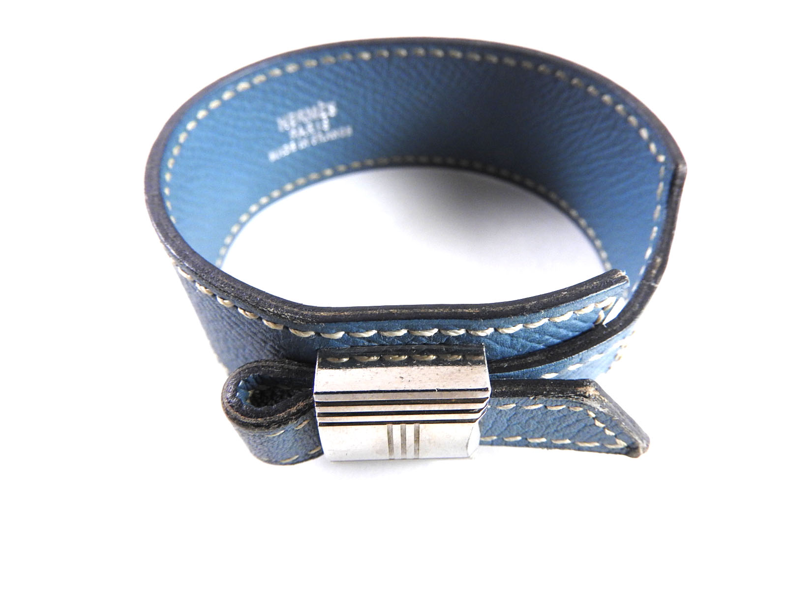 | Exterior | Silver plated: Used feeling. Some scratches. Leather: Used feeling. Some light stains. Some abrasions at the corners. |