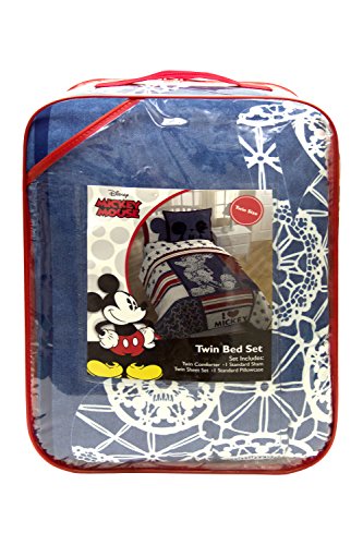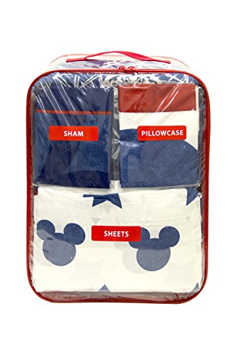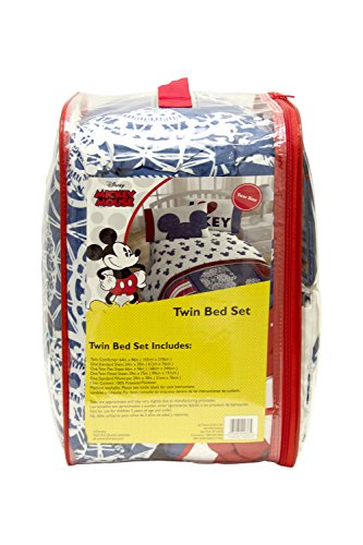Now you can transform your whole bedroom. This Mickey themed bedding collection is perfect for any fan. This set comes with a twin comforter, a flat sheet, a fitted sheet and a pillowcase. The comforter measures 86" x 64", flat sheet measures 96" x 66", fitted sheet measures 75" x 39" and pillowcase measures 30" x 20". Made with machine washable polyester making it easy to care for.Feature