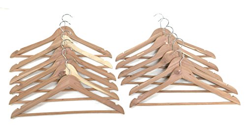-. Feature : Made from US-grown Aromatic Red Cedar / Contoured angles for secure hold without pulling or stretching / Fixed hanging bar for pants, slacks, skirts, scarves, and more / Each pack contains twelve hangers