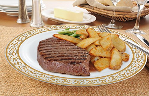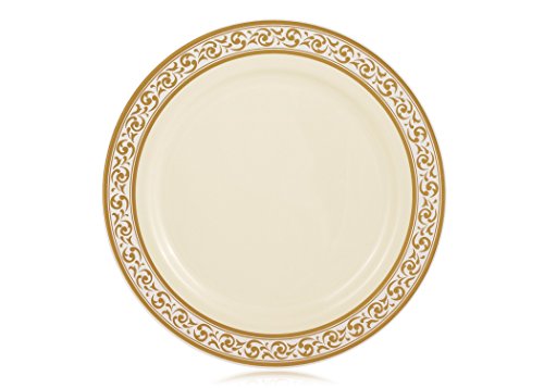 Posh Setting Premium Collection 40 Pack China Look 10.25 Inch Cream/Gold Plastic dinner Plates, Fancy Disposable Dinnerware