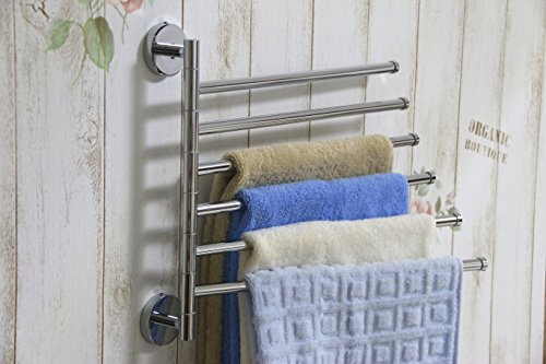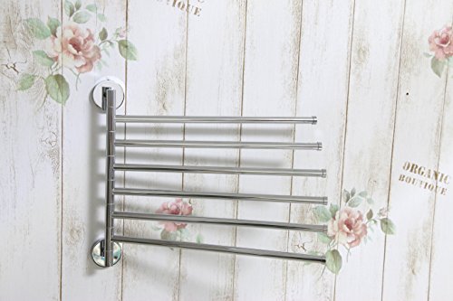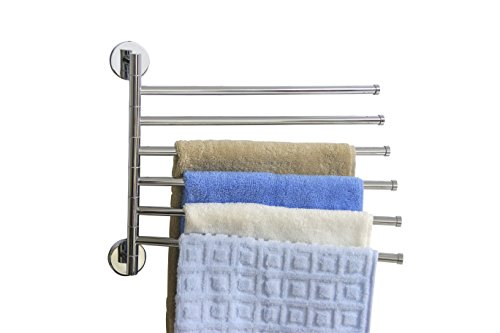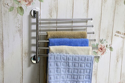 Brass Swing Out Towel Bar 6-Bar Folding Arm Swivel Hanger Bathroom Storage Organizer Space Saving Wall Mount, Polished Chrome