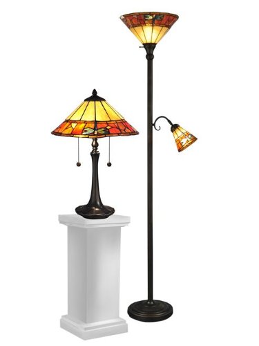 -. Title : Dale Tiffany TC12178 Genoa Table and Floor Lamp Set, Antique Brass