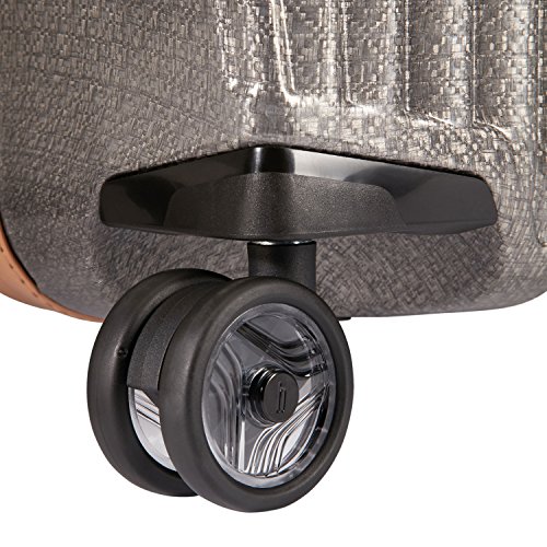 -. Feature : Lightweight, scratch and impact-resistant, metalized Curv material�. Exceptionally resilient, dual tube aluminum pull handle with leather grip / Premium leather carry handles�. Smooth rolling double wheels with translucent polycarbonate core� / Dimensions: 29.9 x 19.3 x 11.8, Weight: 7.3 LB / Recessed TSA lock�. Spacious packing compartments� / Mesh divided, zippered compartment�. Zippered accessory pocket�. Elastic cross straps