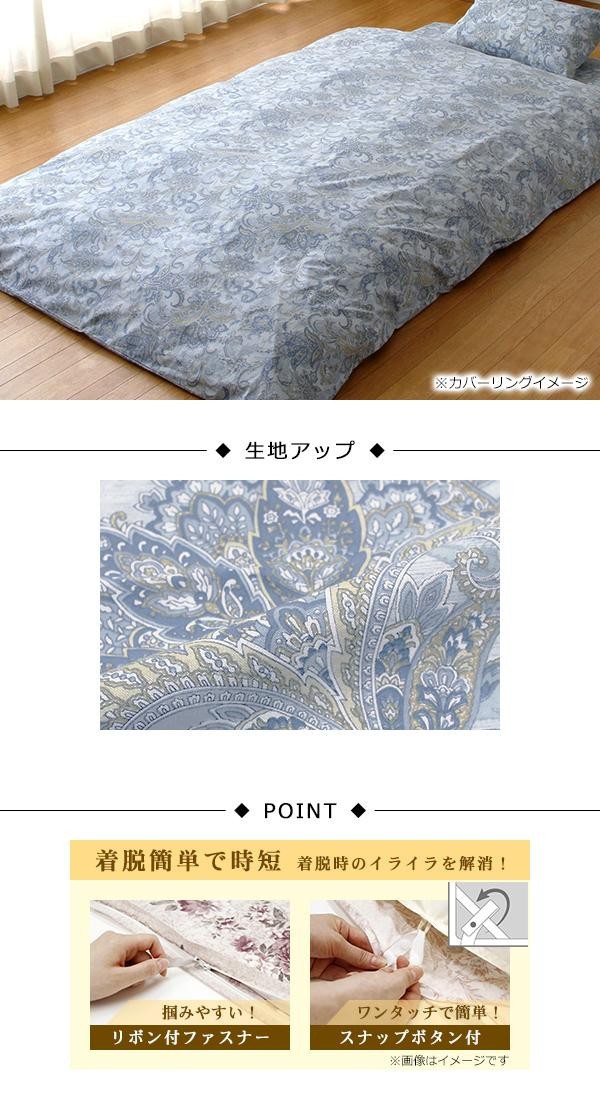 国内で染色し、1枚1枚丁寧に縫製された掛ふとんカバーです。着脱が簡単にできる工夫が施されています。