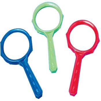 Use the (1) one included magnifying glass (colors vary - red, green, blue) to explore the marble with real insects encased in resin. 2x magnification. Made of plastic. Size 4½" l.