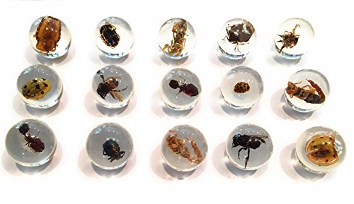 This set includes (3) tubes each with (5) insects for a total of (15) individual authentic insects encased in 1" clear resin marbles. Kids can learn about real insects up close, with this bug's world collection.