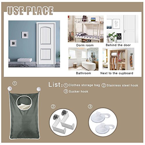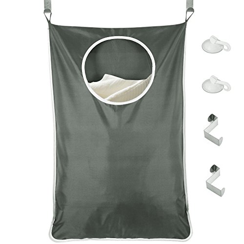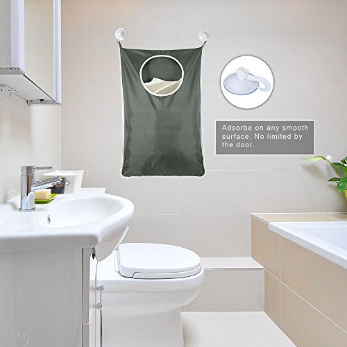 Outdoorfly Wall Door Hanging Laundry Hamper Bag Baby Laundry Nook for Dorm,Bathroom,Nursery,Closets Storage with Free 2pcs Stainless Steel Hooks and Strong Suction Cups(30"x20",Dark Grey)