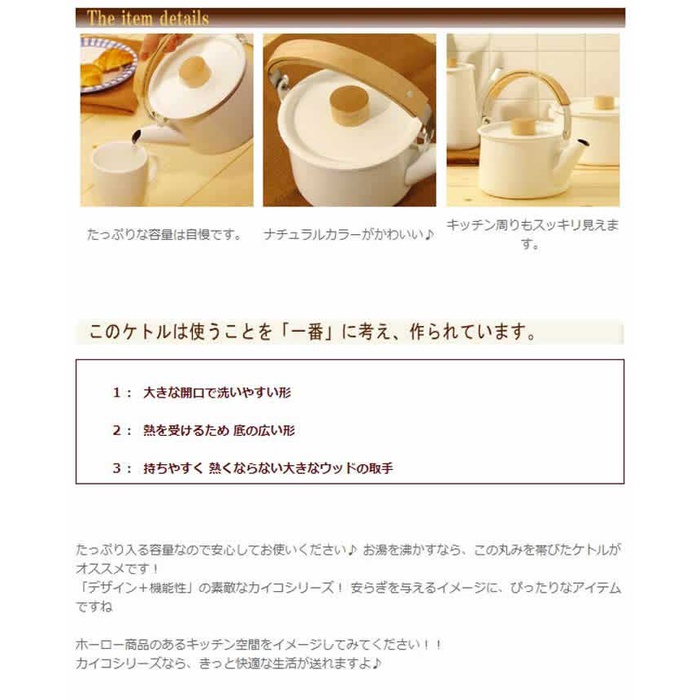 원본상품명: 【ポイント10倍 送料無料 特典付き】★非品 鍋敷きの特典付き★カイコ kaico ケトル やかん おしゃれ ホロ ティポット ポット IH ほうろう 琺瑯 ホロケトル キッチン貨 小泉誠 シンプル 北 IH 200V 【ギフト】 [ カイコケトル1.45L ]