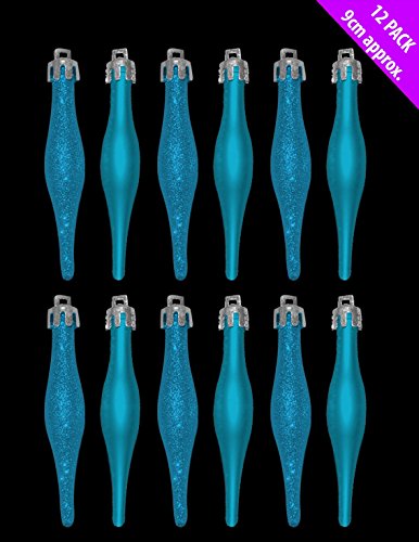 12 x 9cm TURQUOISE Glitter + Matt Droplet Christmas Tree Decorations by Christmas Shop