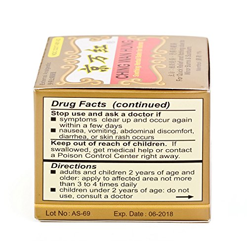 Product DescriptionChing Wan Hang is an externally applied soothing herbal balm intended to relieve pain and itching associated with burns.0