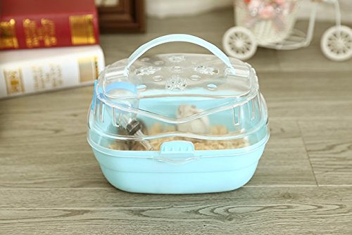 Portable Carrier Hamster Carry Case Cage with Water Bottle Travel&Outdoor for Hamster Small Animals (Blue)