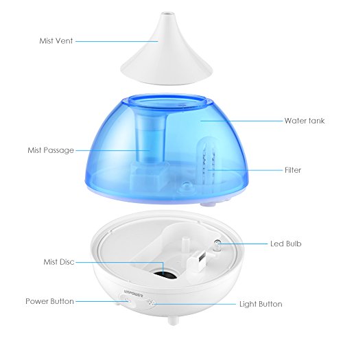 Studio : URPOWER Publisher : URPOWER Binding : Kitchen Product Description Humidity helps fight cold and flu symptoms, reduce irritation from dry coughs and stuffed sinuses. URPOWER Cool Mist Humidifier uses ultrasonic waves to instantly vaporize water in the tank and produce a cool mist. Great for every room in your home, office, hotel--just about anywhere. You can fully enjoy yourself with this Cool Mist Humidifier.