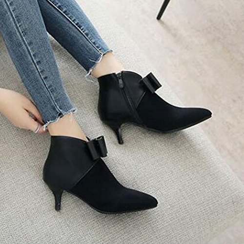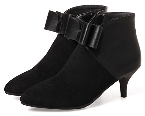 (Mofri)/Women's/Boots/DIRECT FROM USA/Mofri Women's Dressy Bowknot Side Zipper Short Boots Color Block Splicing Pointed Toe Kitten He...