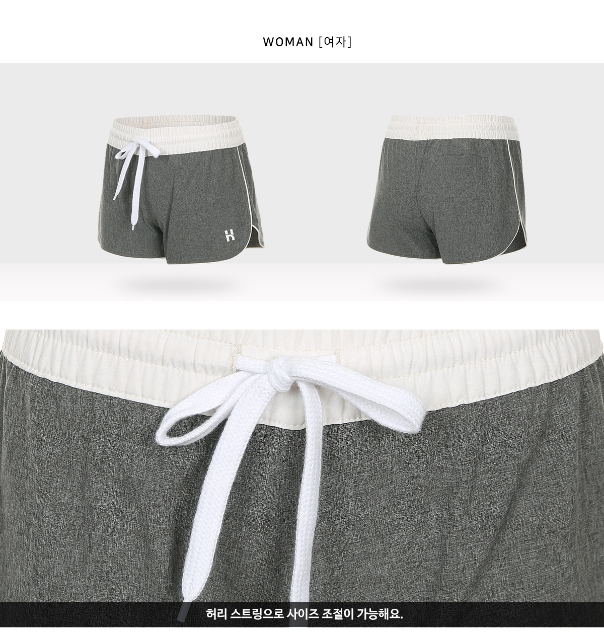 여성팬츠는 숏한 기장감이며 뒷주머니가 있어 간단한 소지품을 넣으실 수 있습니다.