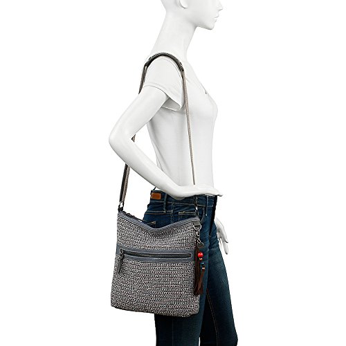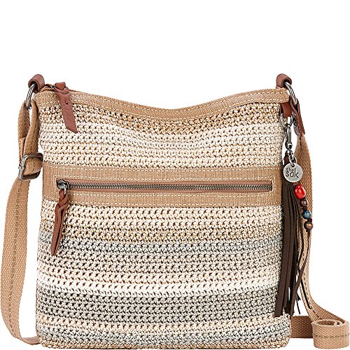 The Sak Lucia Crochet Crossbody features a soft, textured crochet body and colorful beaded tassel keychain. Main zipper closure Back wall zipper pocket Front wall multi pockets Adjustable webbing strap Shoulder guard Front & back exterior zipper pockets Signature logo fringe tassel with multicolored wood beads.Feature