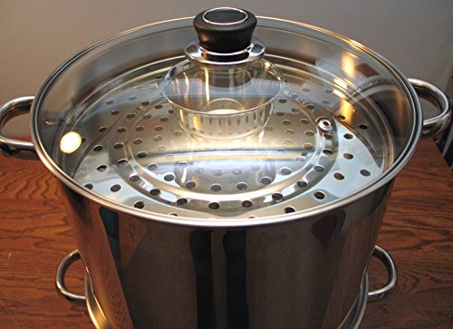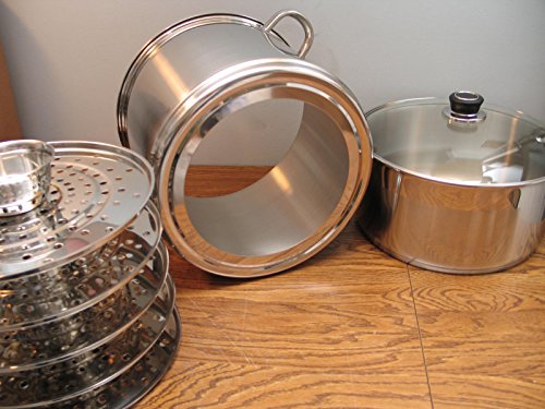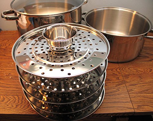 This steamer is made to prepare perfectly steamed Chinese or oriental dumplings "Manti", but can also be used to cook every possible steamed dish imaginable such as fish, vegetables, dim-sum. ravioli, Russian pelmeni or pierogies. The steamer is 2 separate pots of 6" and 10" high. Water for making steam is poured into the 6" bottom pot, while food is placed into the 5-tiered upper 10" pot which is bottomless (can use from 1 to 5 inserts at a time). The smaller pot can also be used as a simple casserole with the included tempered glass cover.Feature