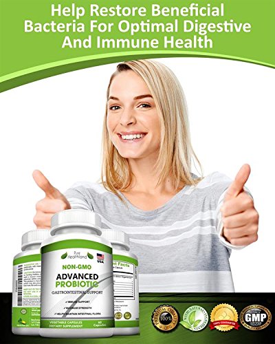 Advanced Probiotic Supplement: Delicate Diversified Balance of 7 Healthy Bacterial Strains. Did you know that a healthy human being has 10 times more healthy bacterial cells living inside her than human cells? I know it's hard to believe, but it's true. So it goes without saying, you need to take care of your gut flora! Having unhealthy gut flora can result in unpleasant symptoms like: Acid reflux - Diarrhea - Constipation - Weight gain - and Gas, among othersThen taking a SAFE, DIVERSIFIED probiotic supplement may be the answer for you. Balancing your gut bacteria can: - Relieve digestive pain - Boost your immune system - Boost metabolism and energy - Relieve bloating and inflammation - Relieve yeast infections. Be careful: all probiotic supplements are NOT created equal. Do You Even Know Where Your Current Probiotic Supplement Originates From Before You Put It Into Your Mouth?! Our Advanced Probiotic: - Contains a delicate balance of 7 different bacterial cultures, each strain playing a different, important role in your gut health- Proudly Made in USA in FDA- Registered & Inspected, GMP-Certified facility with the highest quality manufacturing process . Shipping Directly from Amazon Warehouses Plus Amazon's 5-Star Customer Service. Full 60 Days 100% Money-Back Guarantee! Just Scroll Up and Click "Add to Cart" NOW and Enjoy Your Healthier Life Today!Feature
