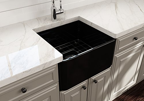 Classico Farmhouse Apron Front Fireclay 20 in. Single Bowl Kitchen Sink with Protective Bottom Grid and Strainer in M.Black