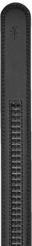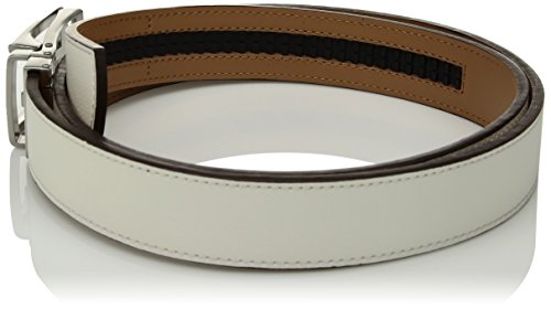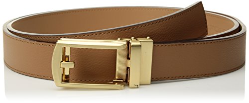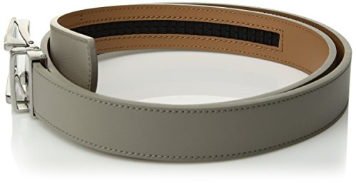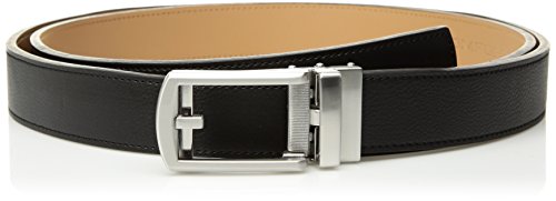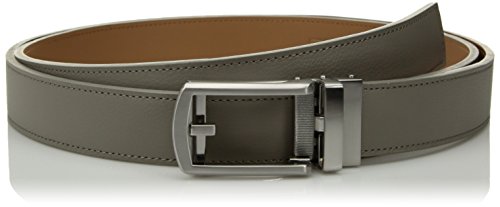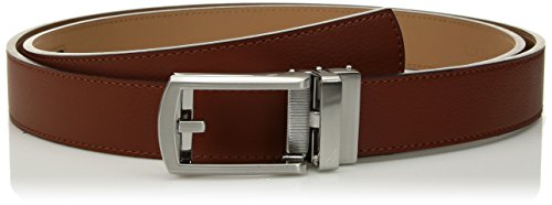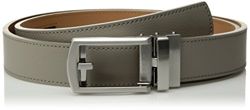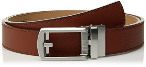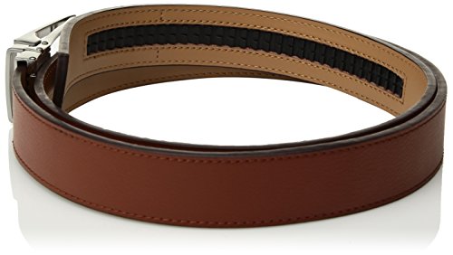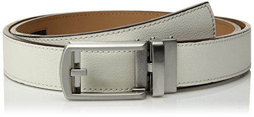 Product Description You've never worn a more comfortable belt. Genuine leather belt with brushed chrome buckle fits waist 28 -48 with micro-adjustable 32-position ratcheting track system for custom fit. Can adjust throughout the day. 0