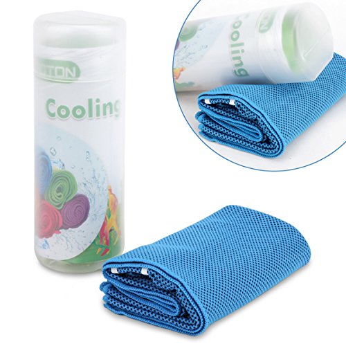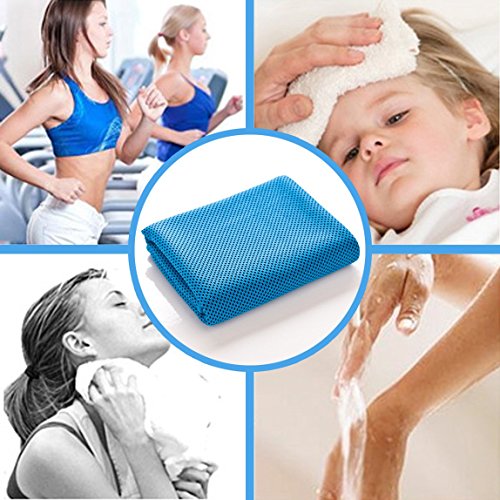 OMOTON High-tech Cooling Towel for Instant Relief-Soft Breathable Mesh Yoga Towel-Keep Cool for Running Biking Hiking and all Other Sports, Blue