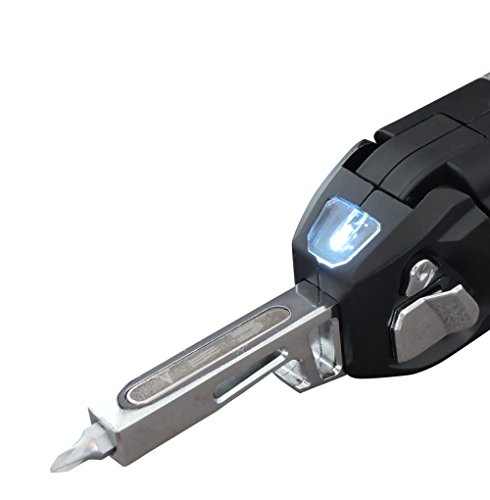 Includes built in screwdriver that locks at 90 and 180 degree angles for extra torque with 16 essential screw driver bits and powerful alloy magnet to hold lose screws