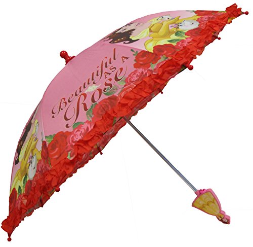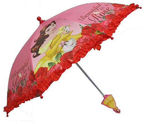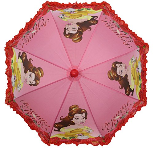 Your princess won't let a little rain spoil her regal attire when she has this Disney Princess Belle Beautiful A s A Rose Umbrella, Features: Belle Beautiful As A Rose, and Belle Tea Set on every other panel. A skinny wrist strap keeps the kid-sized umbrella securely attached, Officially licensed Disney Princess Product, Great Gift For All,Feature