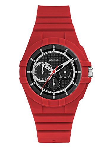 Define Your Time with this Casual Sporty Multi-Function Hot Red Silicone Watch with Black Dial, Day, Date and 24 Hour Int'l Time, Perfect for Men too! Remove A versatile style, perfect for her too!