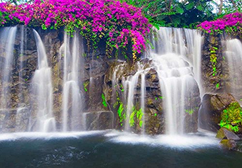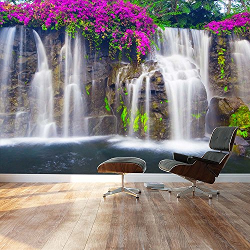 Wall26 - Lush Waterfall and flowers - Landscape - Wall Mural, Removable Sticker, Home Decor - 66x96 inches