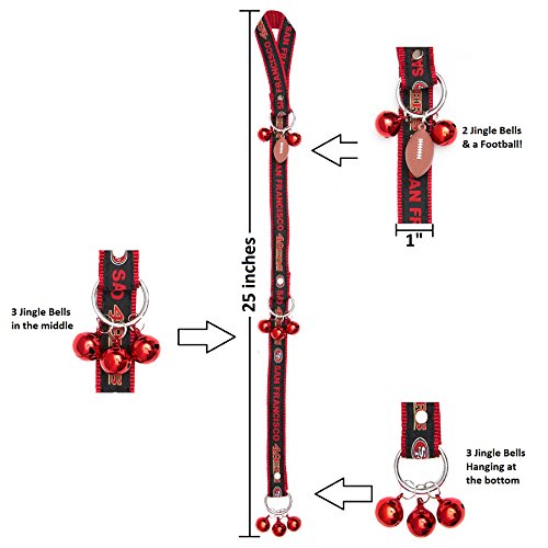 Want to avoid any accident? Do you hate barking? Simple Solution! Your sporty pup will love going outside with this attracting team training bell!!! Use this Pets First Training Doorbells to stop your doggy from barking when it’s time to go outside! No more OOPS No more Barks! The Potty Bells 22” long heavy duty webbing features: - Team colored woven tape that has the?TEAM NAME LOGO!