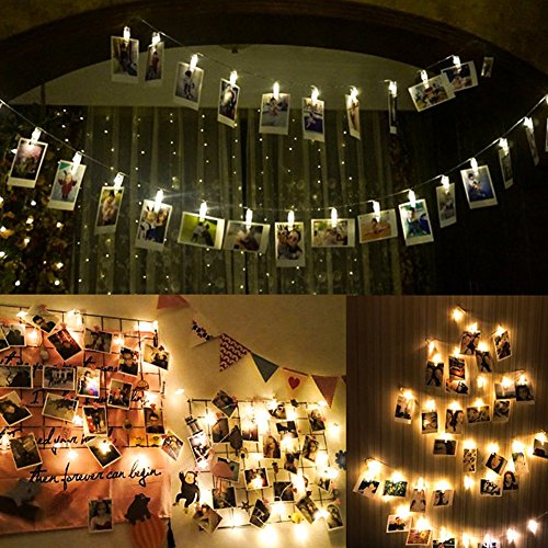 LED Photo Clip String Lights,Besokuse 40 Photo Peg Clips Battery Powered Fairy Twinkle Picture Lights,Wedding Party Christmas Home Decor Lights for Hanging Photos, Cards and Artwork (14Ft,Warm White)