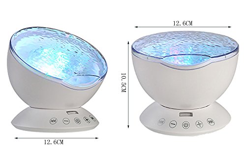 - 2.The Ocean Mood Light is Hypnotic Music Lamp, Atmospheric Projector, Card Readable & Sound All-in-One Device. Built in the 12 high-end ultra-bright LED large-sized chip beads (4 red beads, 4 blue beads, 4 green beads) allow a wider protected area, clearer projection and longer durability, 7 color changing Modes. The light is reflected and inter-converted to create a romantic atmosphere of colorful flowing ocean waves