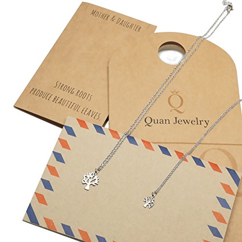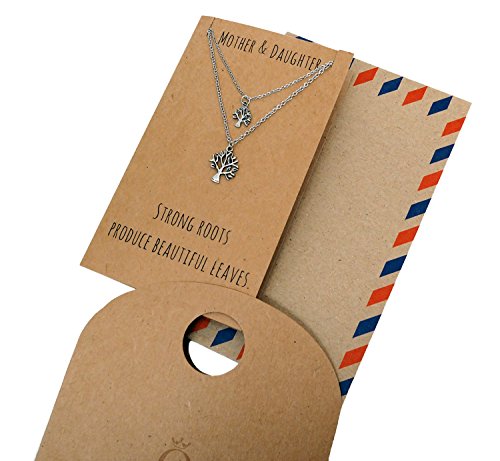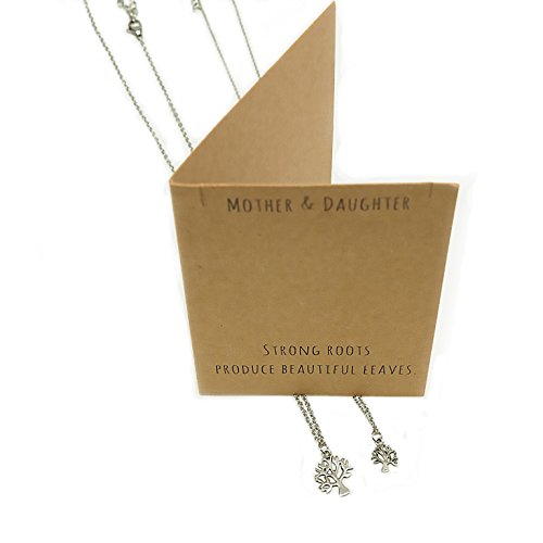 -. Feature : Mother Daughter Jewelry - Tree of life pendant and necklace; / Mother Daughter Necklace Set for 2 - Mother Tree and Daughter Tree pendants are made of pewter; / Tree of life necklace comes with stainless steel chain, 16-in long and is adjustable to 18-in; / Greeting card is made of heavy stock recycled paper, envelope is retro styled airmail; / Love-inspired necklaces, perfect gifts for mom, Mother's Day Gifts and mom gift for daughter.