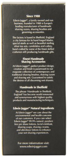 These fabulous edwin jagger shaving brushes are created in sheffield, england combining cutting edge technology with traditional craftsman skills using selected polyester material for the brush handle. all these shaving brushes are hand filled with excellent quality super badger hair. super badger is chosen by many for its soft yet luxurious feel; badger hair is chosen because the ability of the individual hairs to absorb hot water during the shave will ensure a very effective lathering performance for your daily shave when you use edwin jagger natural, paraben free shaving cream or shaving soap. edwin jagger shaving brushes come with a matching plastic drip stand as the company always recommend that, after daily use, shaving brushes are thoroughly rinsed in warm water and hung to dry. this brush comes packaged in an edwin jagger logo presentation box and is accompanied by care and wet shaving instructions to ensure longevity. small sizeFeature