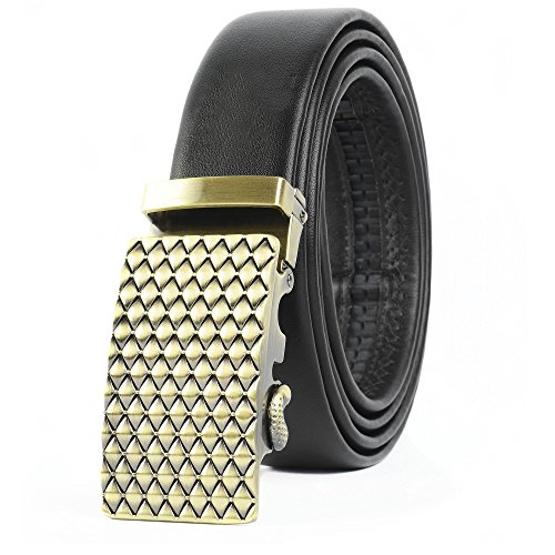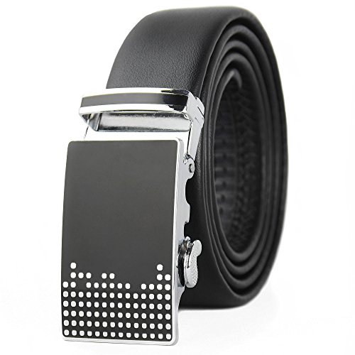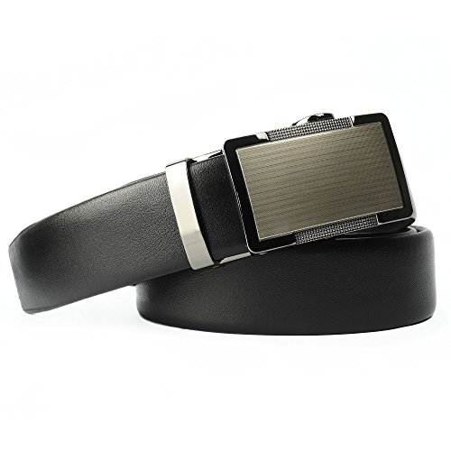 LOOK IMPRESSIVE: Be the envy of your colleagues and friends with our beautiful looking genuine leather ratchet belt. Made from real leather with a synthetic coating to provide a HIGH QUALITY adjustable belt with maximum DURABILTY, STYLE and ELEGANCE. Our fashion current automatic buckles are made of ZINC ALLOY with a sealing glaze for a long lasting finish.