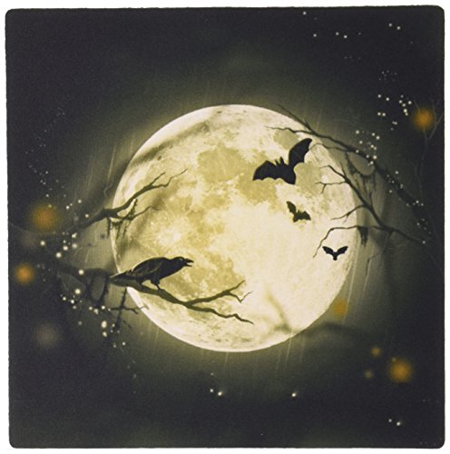 3dRose LLC 8 x 8 x 0.25 Inches Mouse Pad, Full Moon with A Crow and Bats (mp_156735_1)