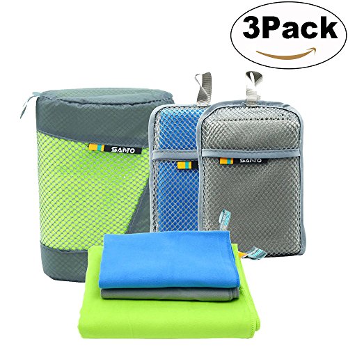 Microfiber Travel Towel Super Absorbent and Quick Dry Towel Antibacterial Towels - Best for Backpacking, Gym, Swimming, Camping, Hiking, Yoga or Bath Set 3 Pack (Green, Gray, Blue)