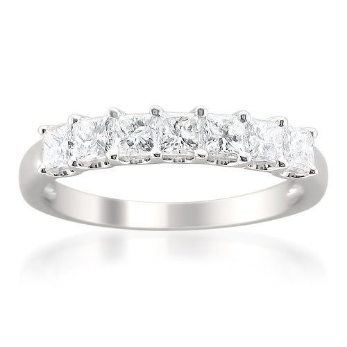 -. Title : 14k White Gold P.R.Incess-cut Diamond Bridal Wedding Band Ring (1 cttw, H-I, I1-I2)
