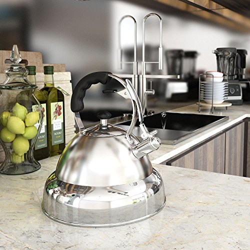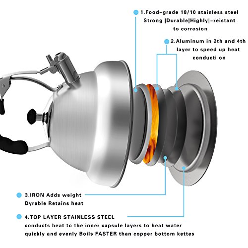 Large Stovetop Tea Kettle - Gives steam signal sound to remind you the boiled kettle when you're away.