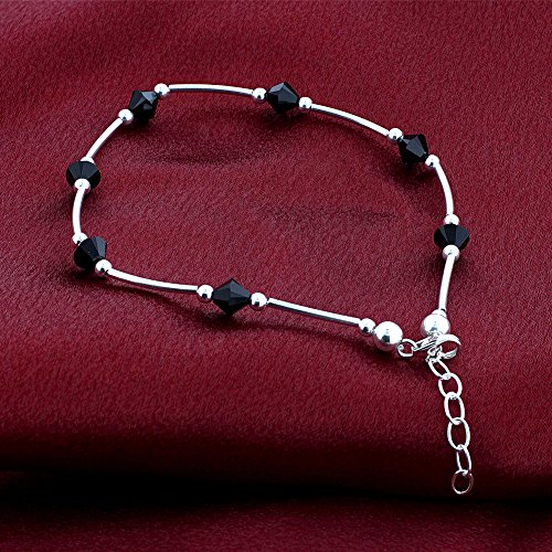 -. Title : Gem Avenue 925 Sterling Silver Swarovski Crystal Elements Black Anklet 9 to 10 inch