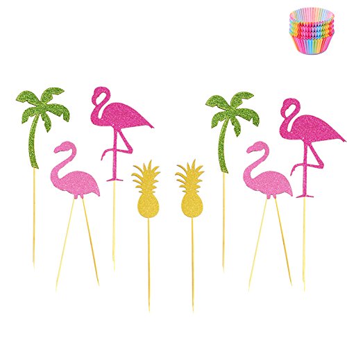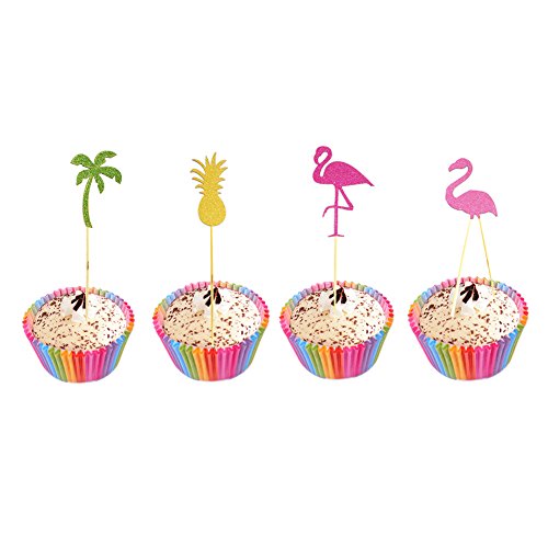 16pcs Hawaii Pineapple Flamingo Cupcake Toppers & Wrappers Baby Shower Girl Birthday Party Cupcake Toppers Wedding Bridal Shower Included 100pcs Cupcake Wrappers