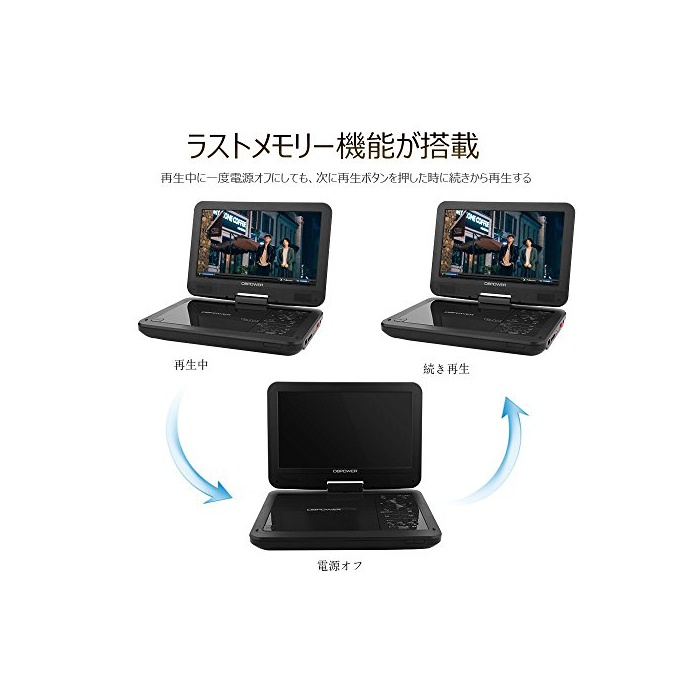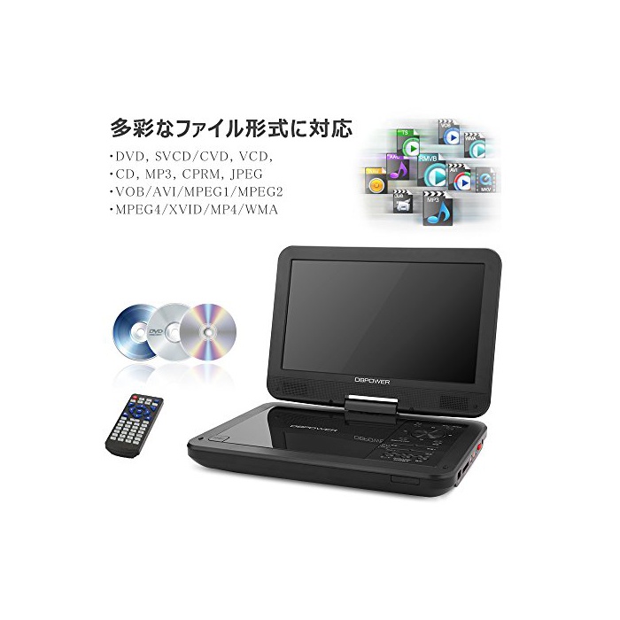 DBPOWER MK-101 포터블DVD플레이어 10인치 180°회전 가능 CPRM대응 리젼 프리 SD카드,USB메모리로도 대응 가능