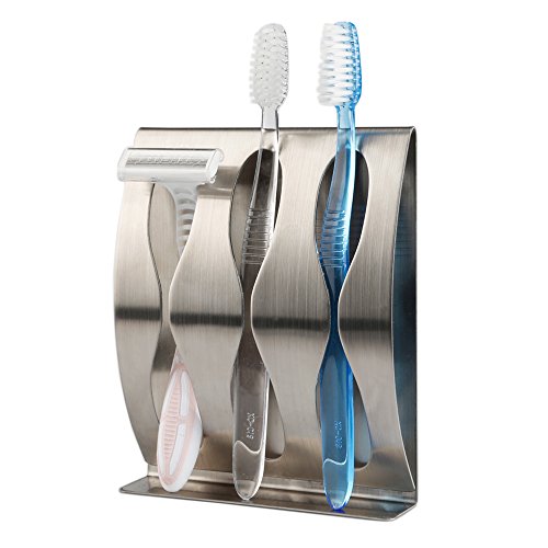 Lexbo Wall Mounted Toothbrush Holder, Polished Stainless Razor Holder Self-Adhesive 3 Holes for Home Storage/Bathroom/Lavatory