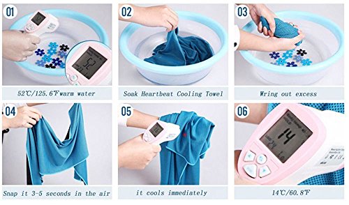 QUICK COOLING MATERIAL:The soaked fabric is pleasant to touch, rather than annoyingly dripping wet. Hyper-evaporative breathable mesh material makes it easy to activate the chilling towel when you simply soak, wring out and snap it. The super absorbent fiber weave technology of the mesh towel regulates the water inside and ensures water retention, so it's treating it kind of like an air-conditioner, and within seconds you get cold. Re-wet to reactivate it.