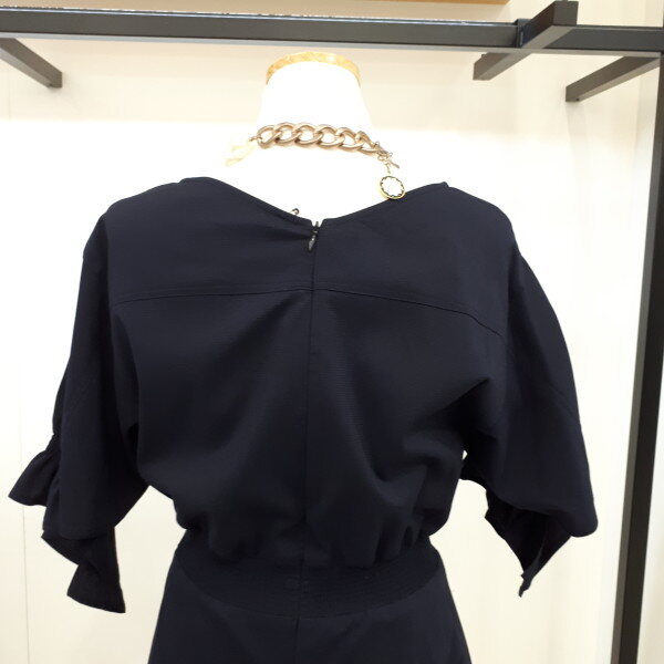 여성스러운 넥선 퍼프소매선이 체형을 감싸주어 날씬해보이며 허리밴딩이있어 편하게 착용할수있습니다