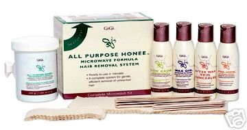 -. Feature : A complete waxing kit for salon or home use / Effective for all waxing services while being gentle to the skin / Kit contains: 1 all-purpose honee microwave formula (8 ounce), 1 pre hon (2 ounce), 1 wax off (2 ounce), 1 post wax skin concealer (2 ounce), 1 slow grow (2 ounce), 5 small accu edge applicators, 5 large accu edge applicators / 10 small natural muslin strips, 10 large natural muslin strips