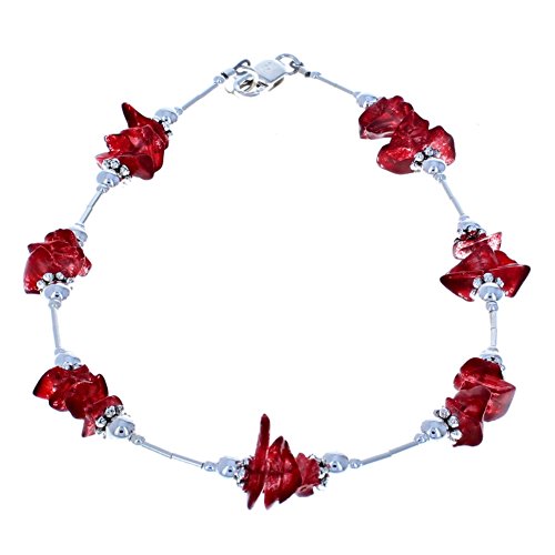 -. Binding : Jewelry -. Brand : Timeless-Treasures -. Department : womens -. Feature : Available Lengths: 9" - 12" / 100% Satisfaction Guaranteed / Ships from USA / FREE GIFT BAG WITH EVERY ORDER ! (Timeless Treasures ImP.R.Inted) -. ProductGroup : Jewelry -. ProductTypeName : FASHIONNECKLACEBRACELETANKLET -. Title : Womens Red Glass Chips & Sterling Silver Anklet with Daisies
