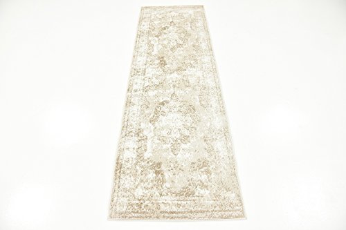 Traditional 2 feet by 7 feet (2' x 7') Runner Sofia Beige Area Rug